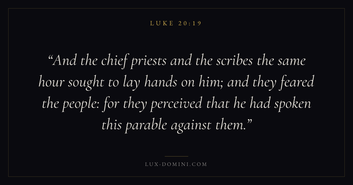 And the chief priests and the scribes the same hour sought to lay hands on him; and they feared the people: for they perceived that he had spoken this parable against them.