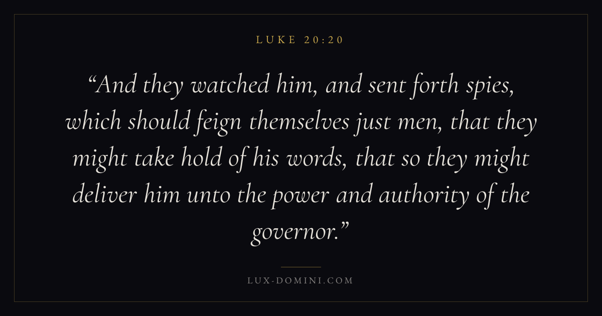 And they watched him, and sent forth spies, which should feign themselves just men, that they might take hold of his words, that so they might deliver him unto the power and authority of the governor.