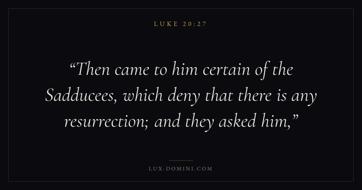 Then came to him certain of the Sadducees, which deny that there is any resurrection; and they asked him,
