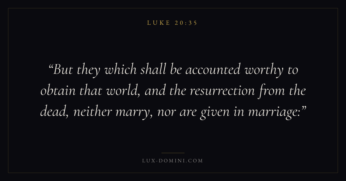 But they which shall be accounted worthy to obtain that world, and the resurrection from the dead, neither marry, nor are given in marriage: