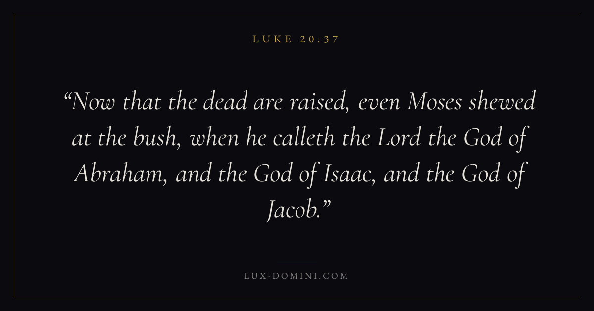 Now that the dead are raised, even Moses shewed at the bush, when he calleth the Lord the God of Abraham, and the God of Isaac, and the God of Jacob.