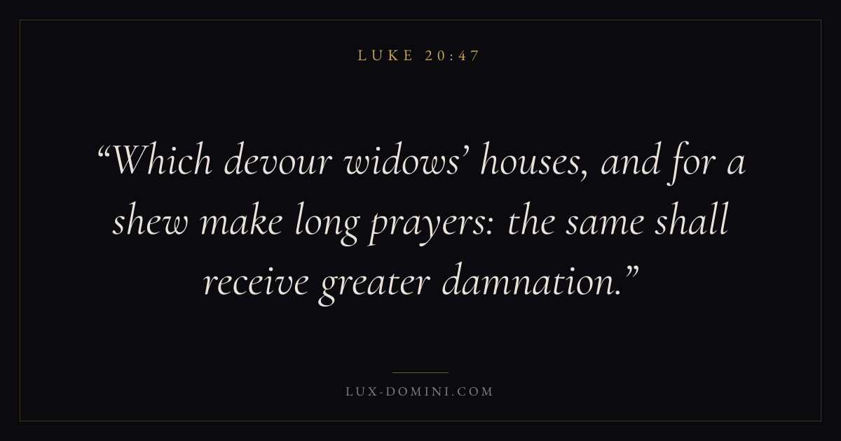 Which devour widows’ houses, and for a shew make long prayers: the same shall receive greater damnation.