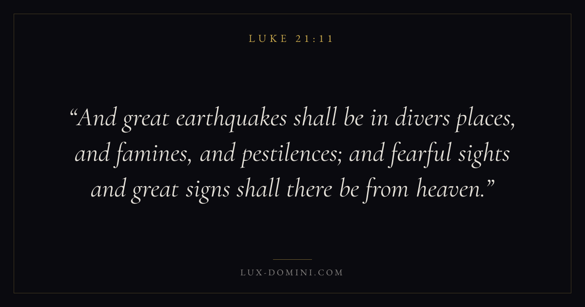 And great earthquakes shall be in divers places, and famines, and pestilences; and fearful sights and great signs shall there be from heaven.