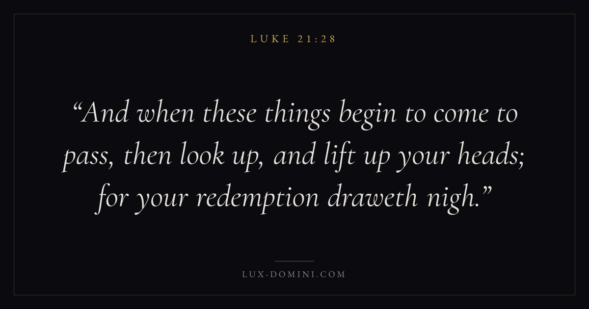 And when these things begin to come to pass, then look up, and lift up your heads; for your redemption draweth nigh.