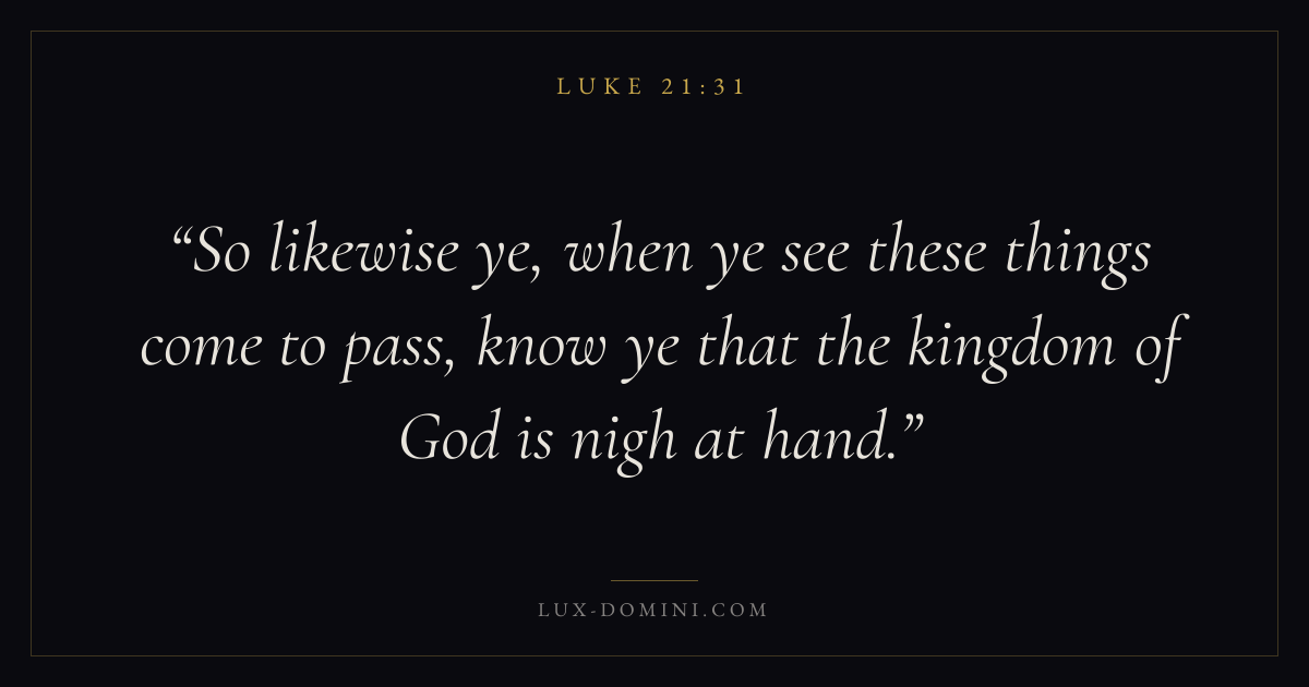 So likewise ye, when ye see these things come to pass, know ye that the kingdom of God is nigh at hand.