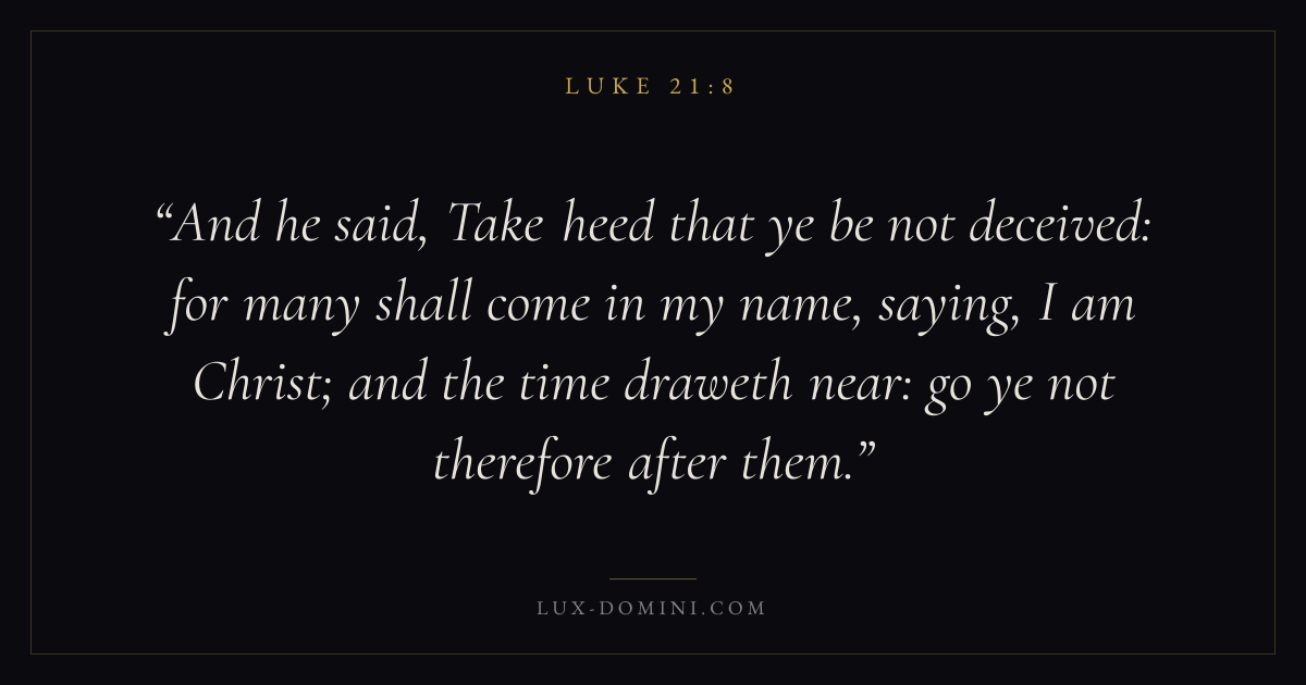 And he said, Take heed that ye be not deceived: for many shall come in my name, saying, I am Christ; and the time draweth near: go ye not therefore after them.