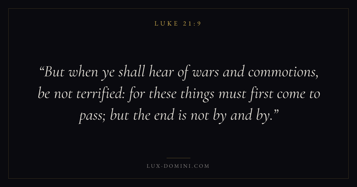 But when ye shall hear of wars and commotions, be not terrified: for these things must first come to pass; but the end is not by and by.