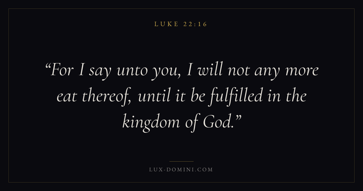 For I say unto you, I will not any more eat thereof, until it be fulfilled in the kingdom of God.