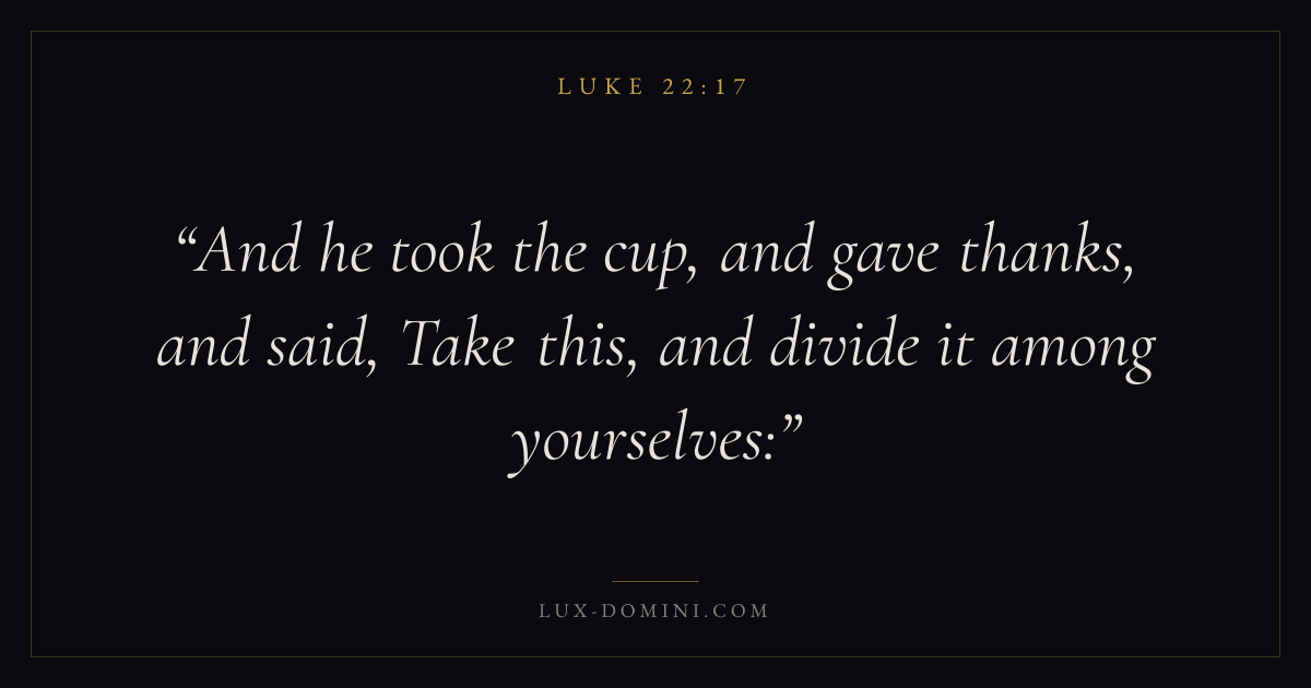 And he took the cup, and gave thanks, and said, Take this, and divide it among yourselves: