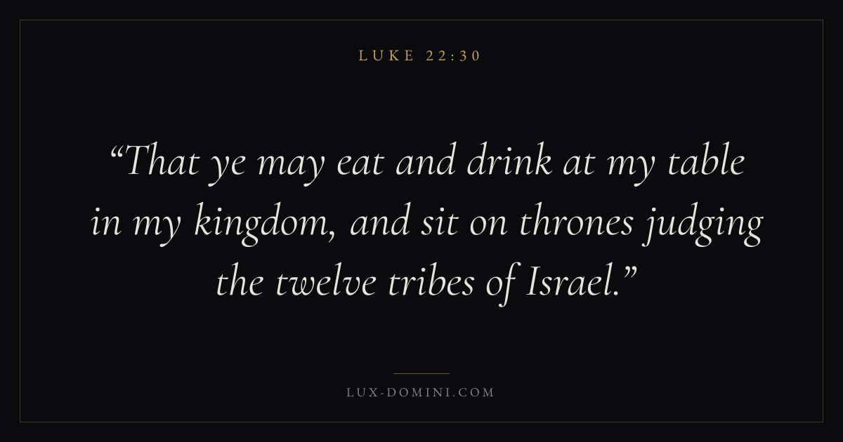 That ye may eat and drink at my table in my kingdom, and sit on thrones judging the twelve tribes of Israel.