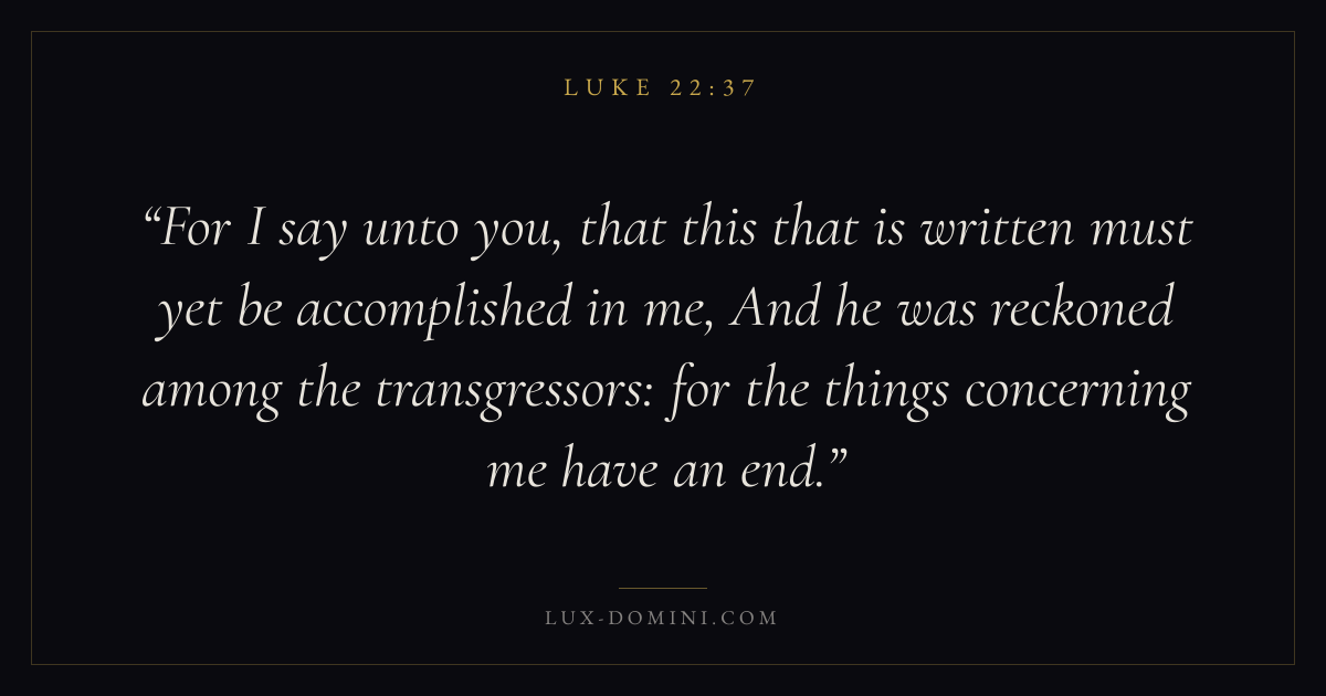For I say unto you, that this that is written must yet be accomplished in me, And he was reckoned among the transgressors: for the things concerning me have an end.