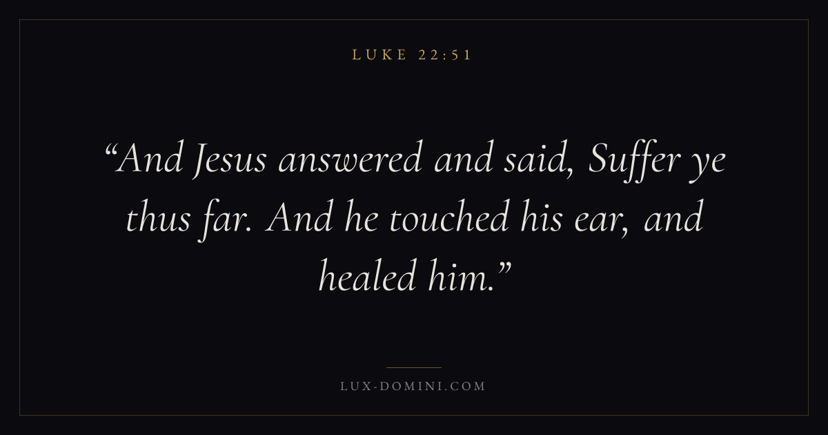 And Jesus answered and said, Suffer ye thus far. And he touched his ear, and healed him.