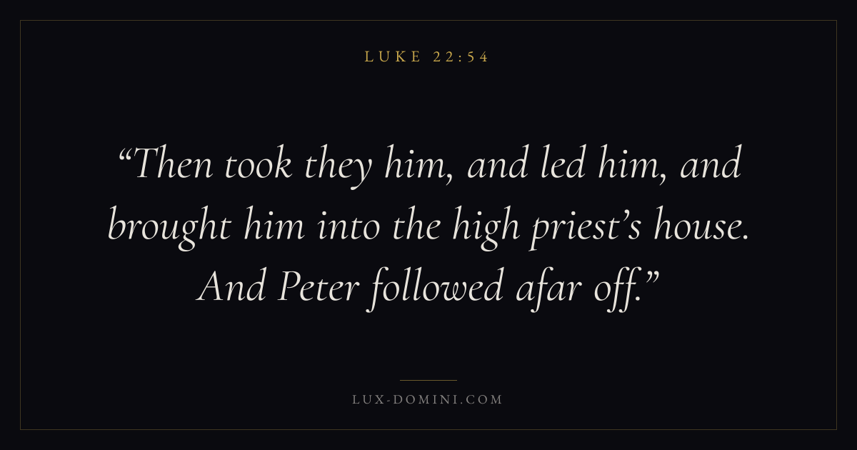 Then took they him, and led him, and brought him into the high priest’s house. And Peter followed afar off.