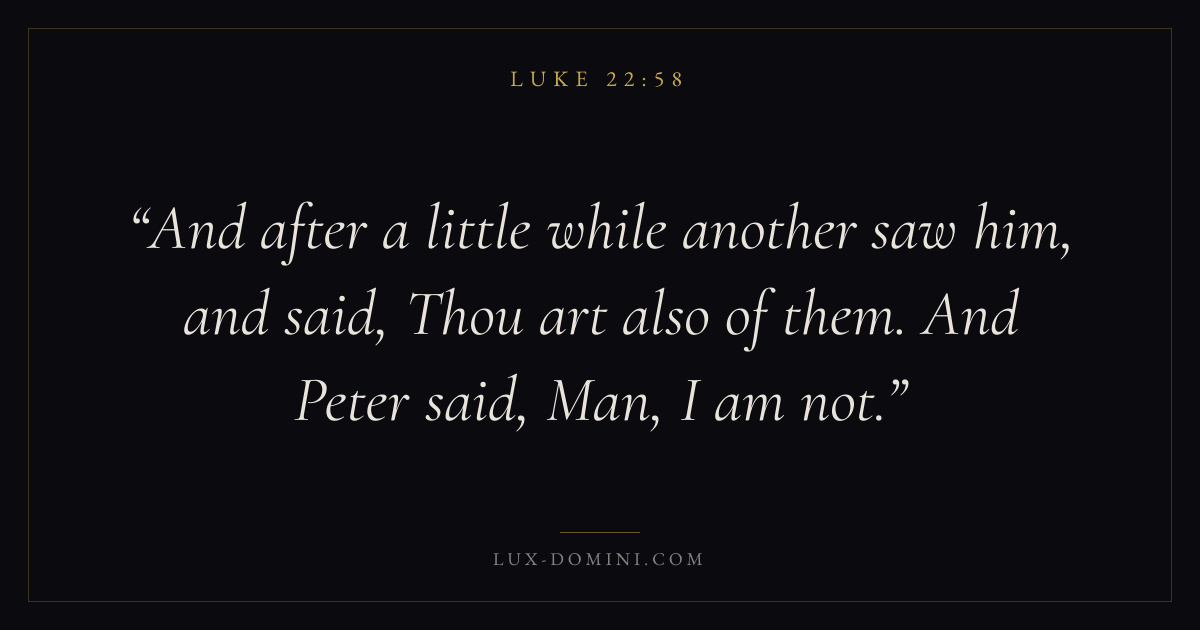 And after a little while another saw him, and said, Thou art also of them. And Peter said, Man, I am not.