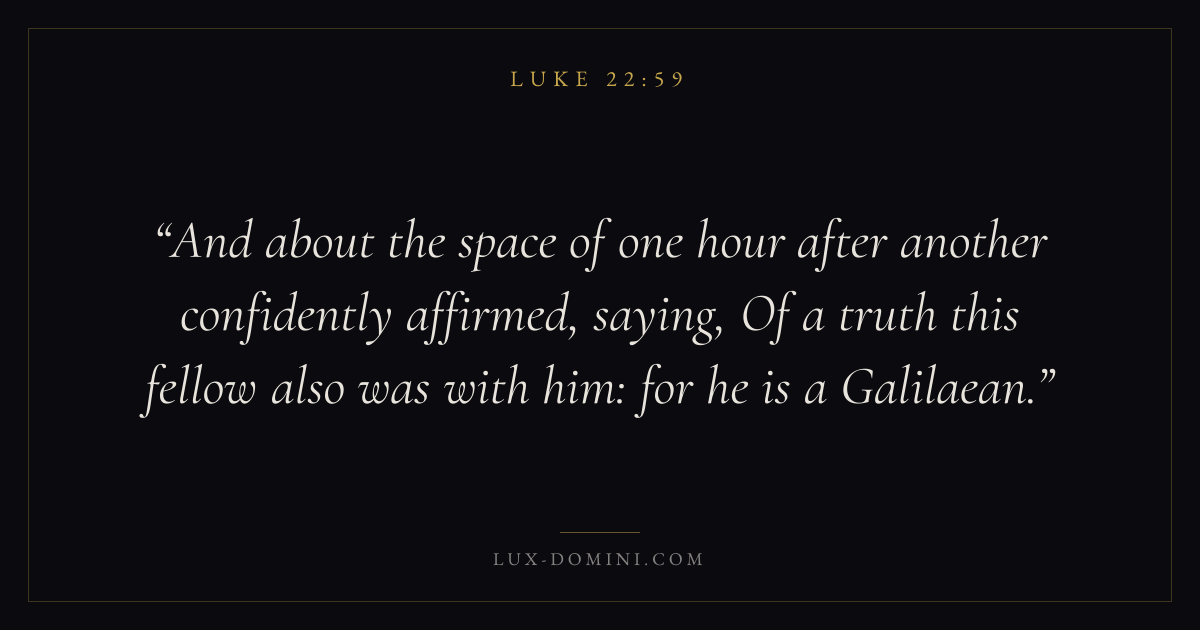 And about the space of one hour after another confidently affirmed, saying, Of a truth this fellow also was with him: for he is a Galilaean.