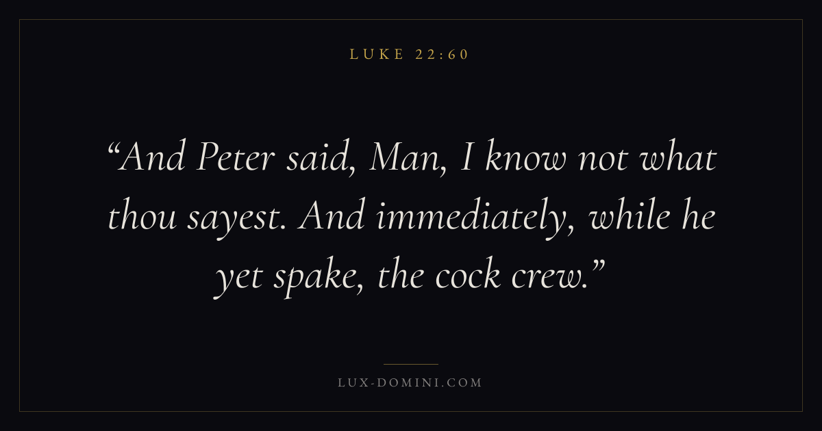 And Peter said, Man, I know not what thou sayest. And immediately, while he yet spake, the cock crew.