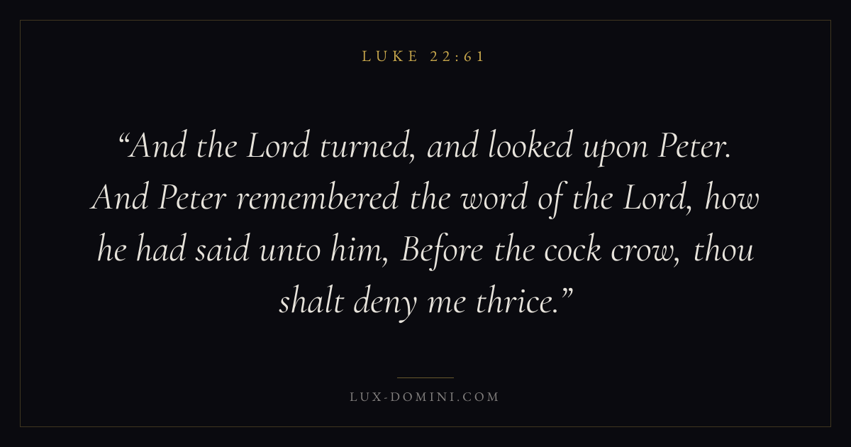 And the Lord turned, and looked upon Peter. And Peter remembered the word of the Lord, how he had said unto him, Before the cock crow, thou shalt deny me thrice.