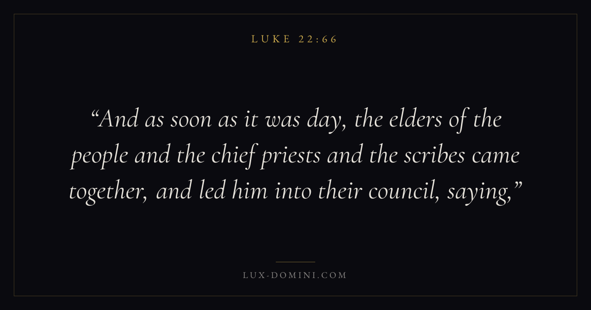 And as soon as it was day, the elders of the people and the chief priests and the scribes came together, and led him into their council, saying,