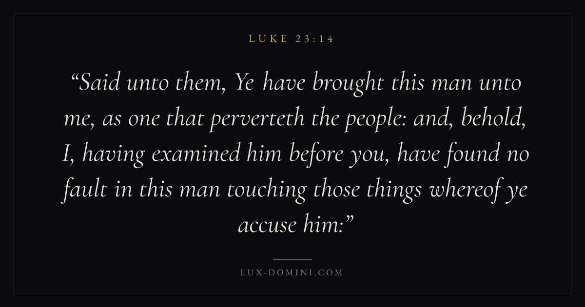Said unto them, Ye have brought this man unto me, as one that perverteth the people: and, behold, I, having examined him before you, have found no fault in this man touching those things whereof ye accuse him: