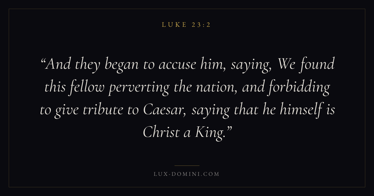 And they began to accuse him, saying, We found this fellow perverting the nation, and forbidding to give tribute to Caesar, saying that he himself is Christ a King.