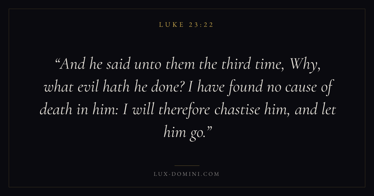 And he said unto them the third time, Why, what evil hath he done? I have found no cause of death in him: I will therefore chastise him, and let him go.