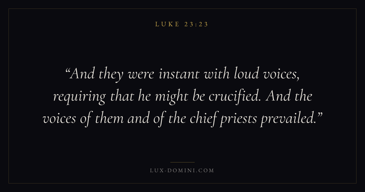 And they were instant with loud voices, requiring that he might be crucified. And the voices of them and of the chief priests prevailed.