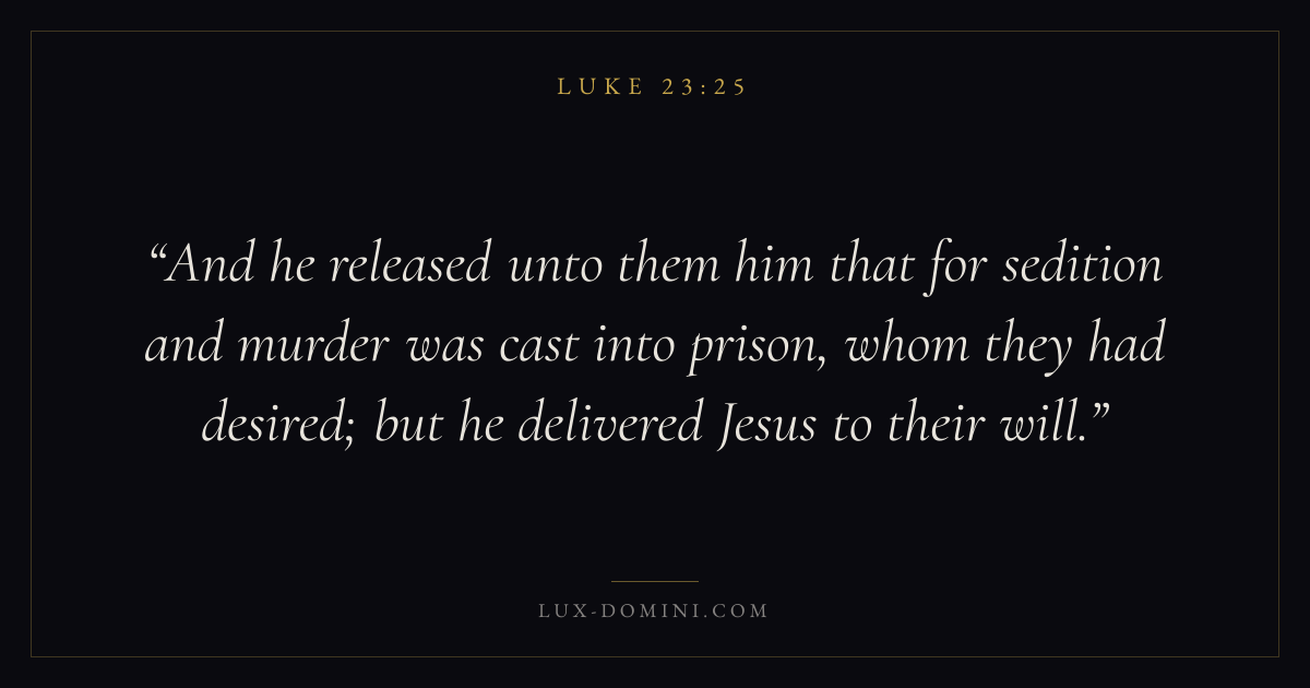 And he released unto them him that for sedition and murder was cast into prison, whom they had desired; but he delivered Jesus to their will.