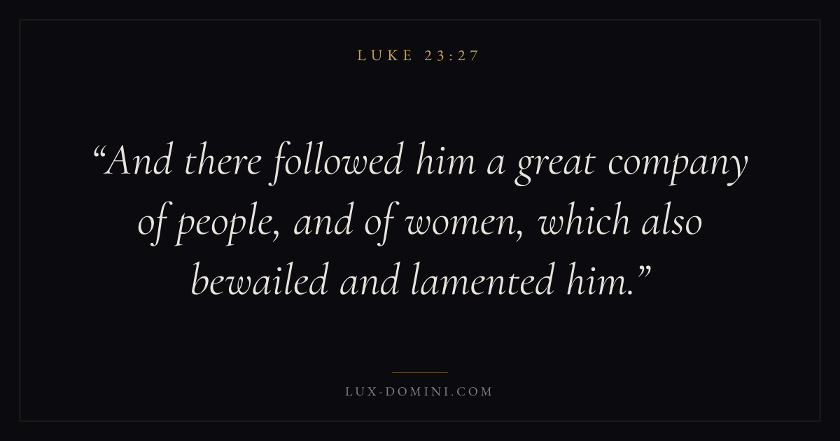 And there followed him a great company of people, and of women, which also bewailed and lamented him.