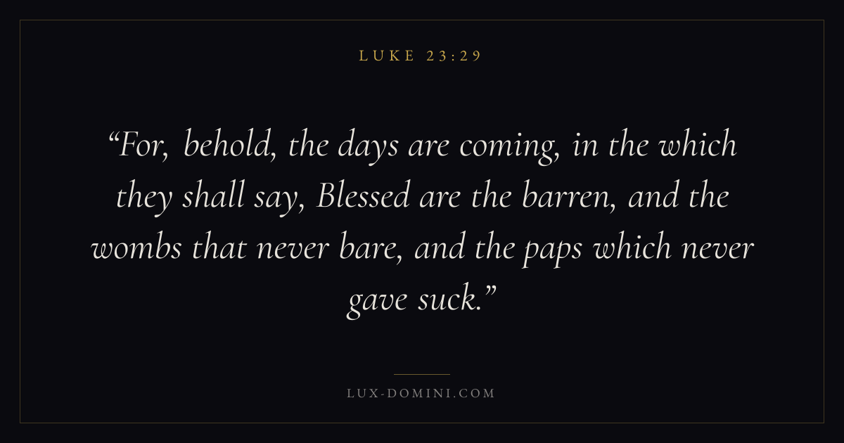 For, behold, the days are coming, in the which they shall say, Blessed are the barren, and the wombs that never bare, and the paps which never gave suck.