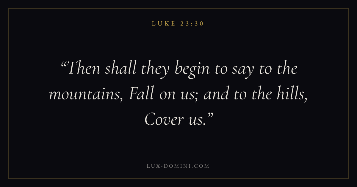 Then shall they begin to say to the mountains, Fall on us; and to the hills, Cover us.