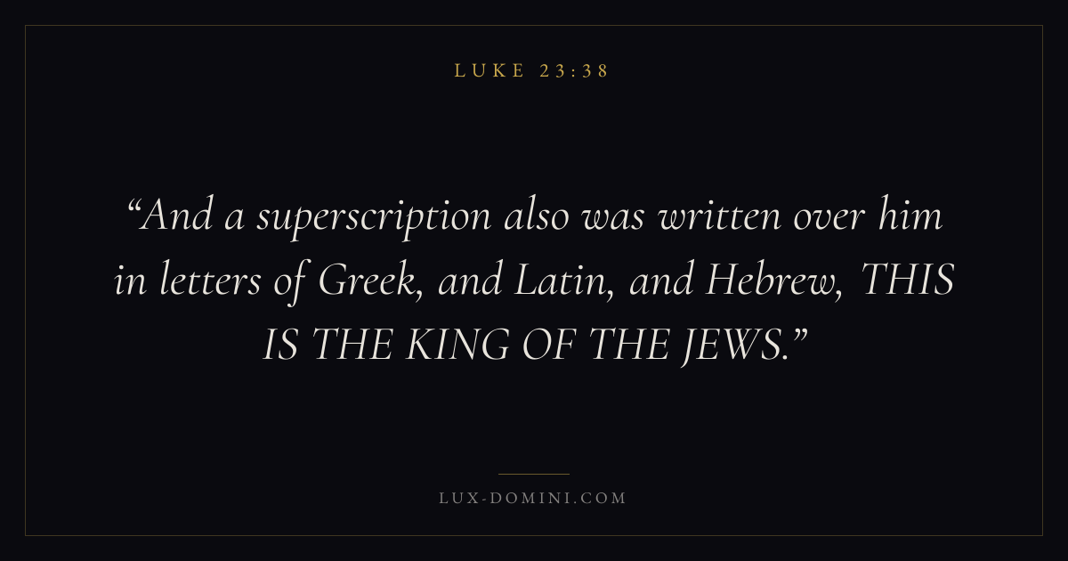 And a superscription also was written over him in letters of Greek, and Latin, and Hebrew, THIS IS THE KING OF THE JEWS.