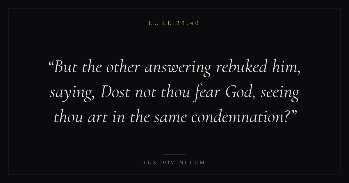 But the other answering rebuked him, saying, Dost not thou fear God, seeing thou art in the same condemnation?