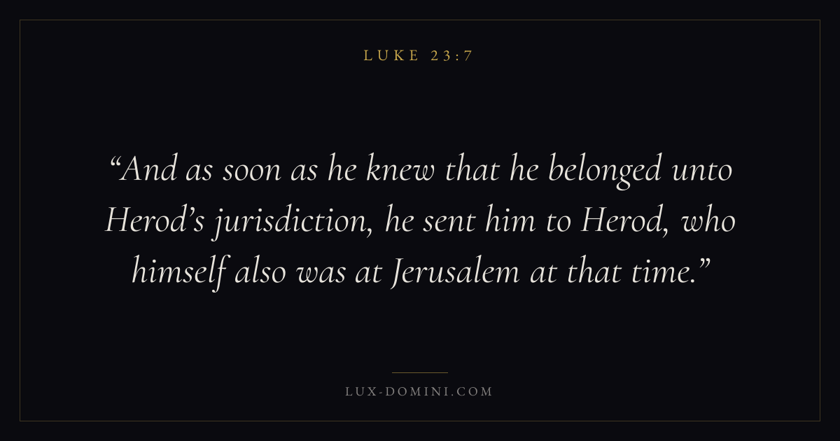 And as soon as he knew that he belonged unto Herod’s jurisdiction, he sent him to Herod, who himself also was at Jerusalem at that time.