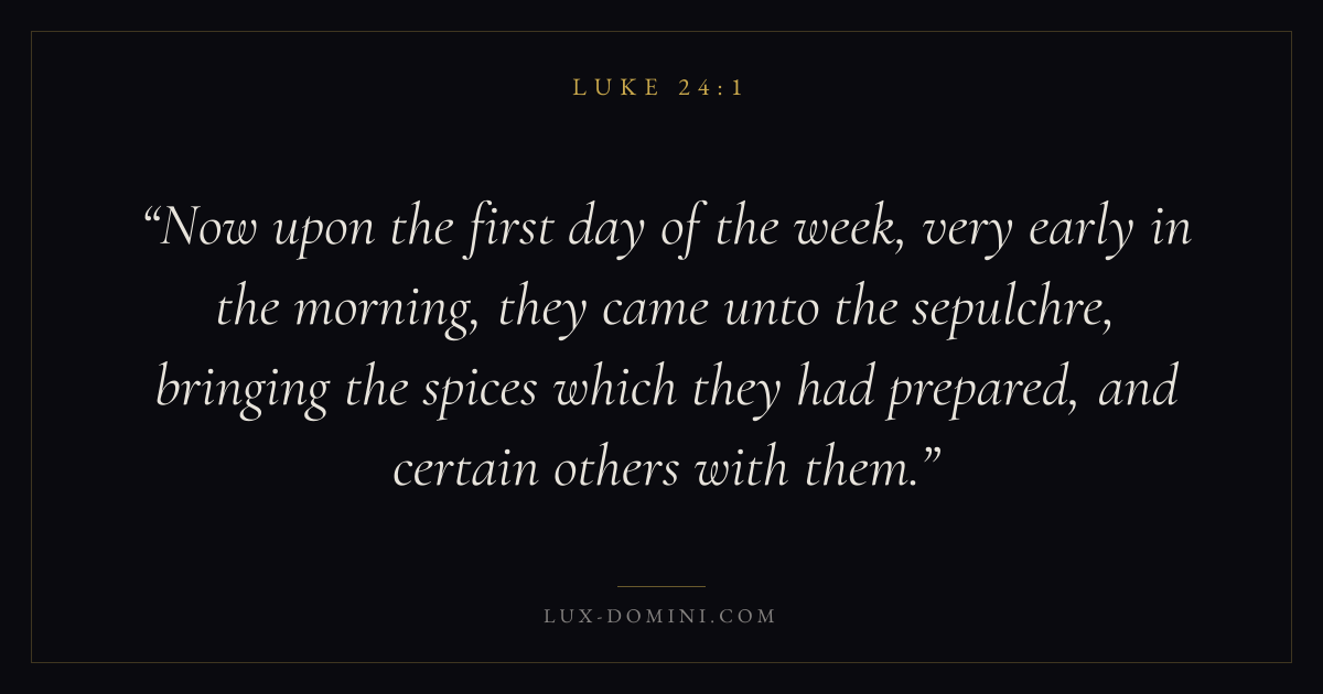 Now upon the first day of the week, very early in the morning, they came unto the sepulchre, bringing the spices which they had prepared, and certain others with them.