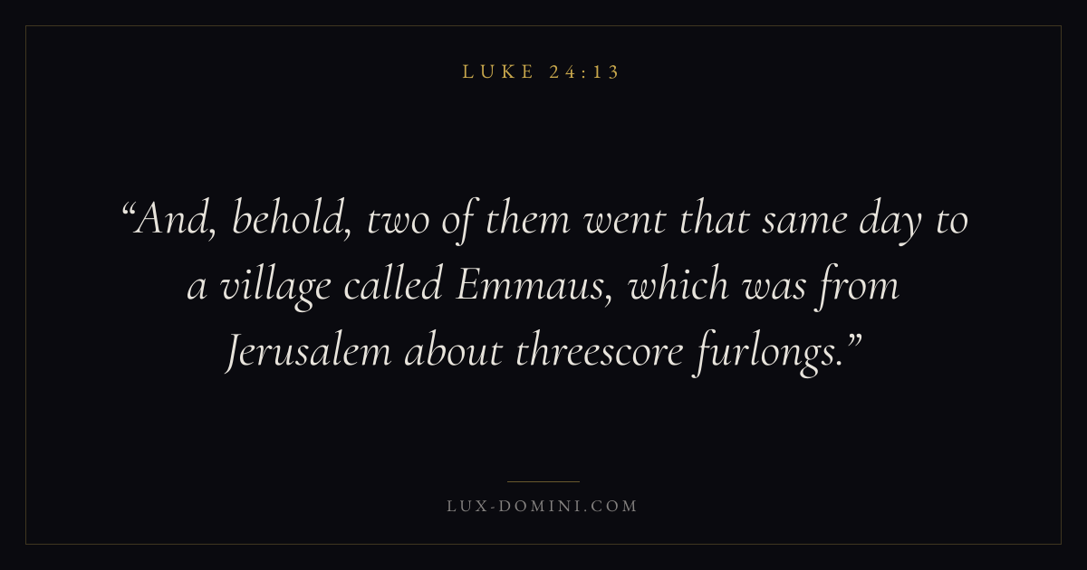 And, behold, two of them went that same day to a village called Emmaus, which was from Jerusalem about threescore furlongs.