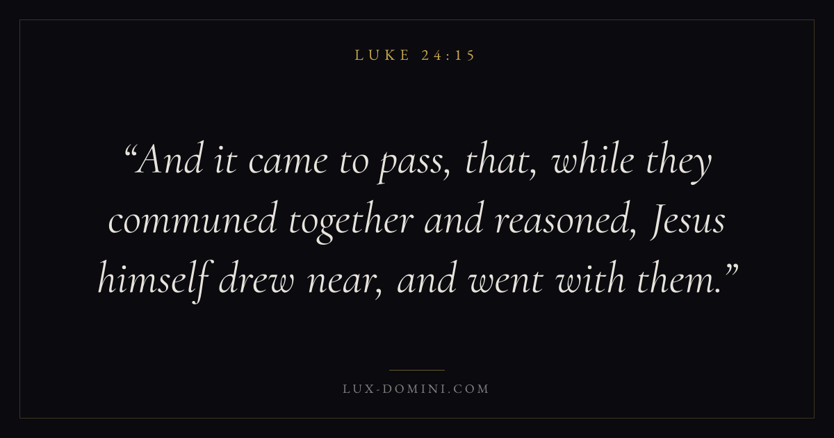And it came to pass, that, while they communed together and reasoned, Jesus himself drew near, and went with them.