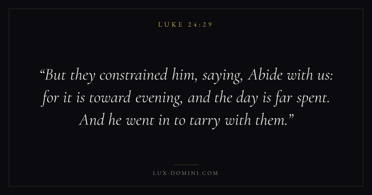 But they constrained him, saying, Abide with us: for it is toward evening, and the day is far spent. And he went in to tarry with them.