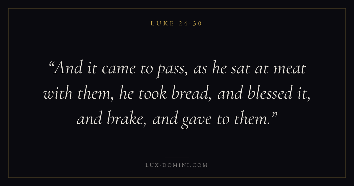 And it came to pass, as he sat at meat with them, he took bread, and blessed it, and brake, and gave to them.
