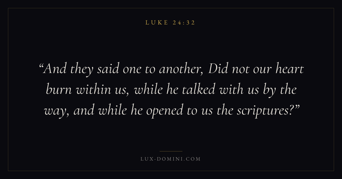 And they said one to another, Did not our heart burn within us, while he talked with us by the way, and while he opened to us the scriptures?