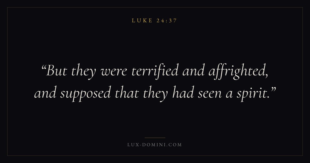 But they were terrified and affrighted, and supposed that they had seen a spirit.
