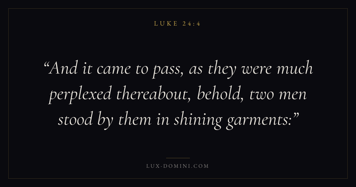 And it came to pass, as they were much perplexed thereabout, behold, two men stood by them in shining garments: