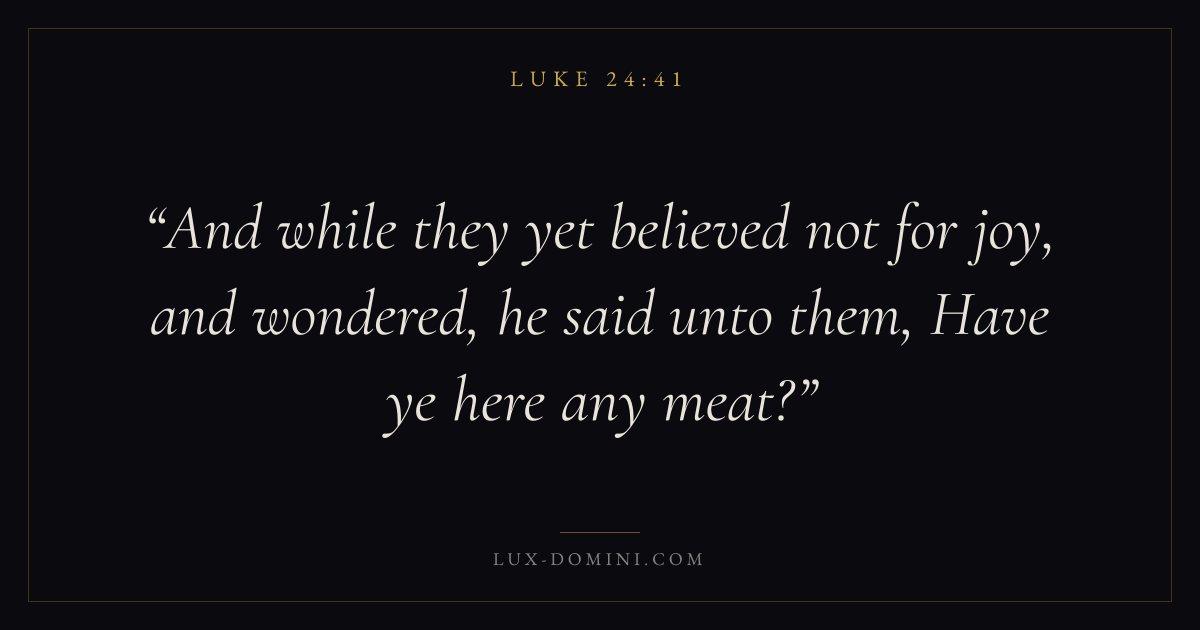 And while they yet believed not for joy, and wondered, he said unto them, Have ye here any meat?