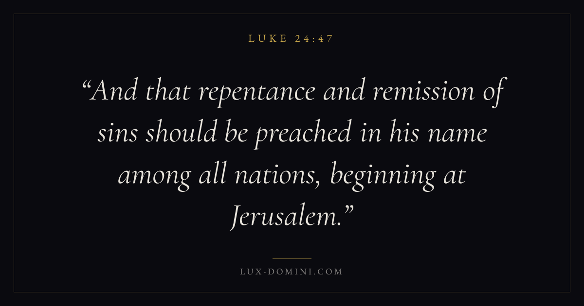 And that repentance and remission of sins should be preached in his name among all nations, beginning at Jerusalem.