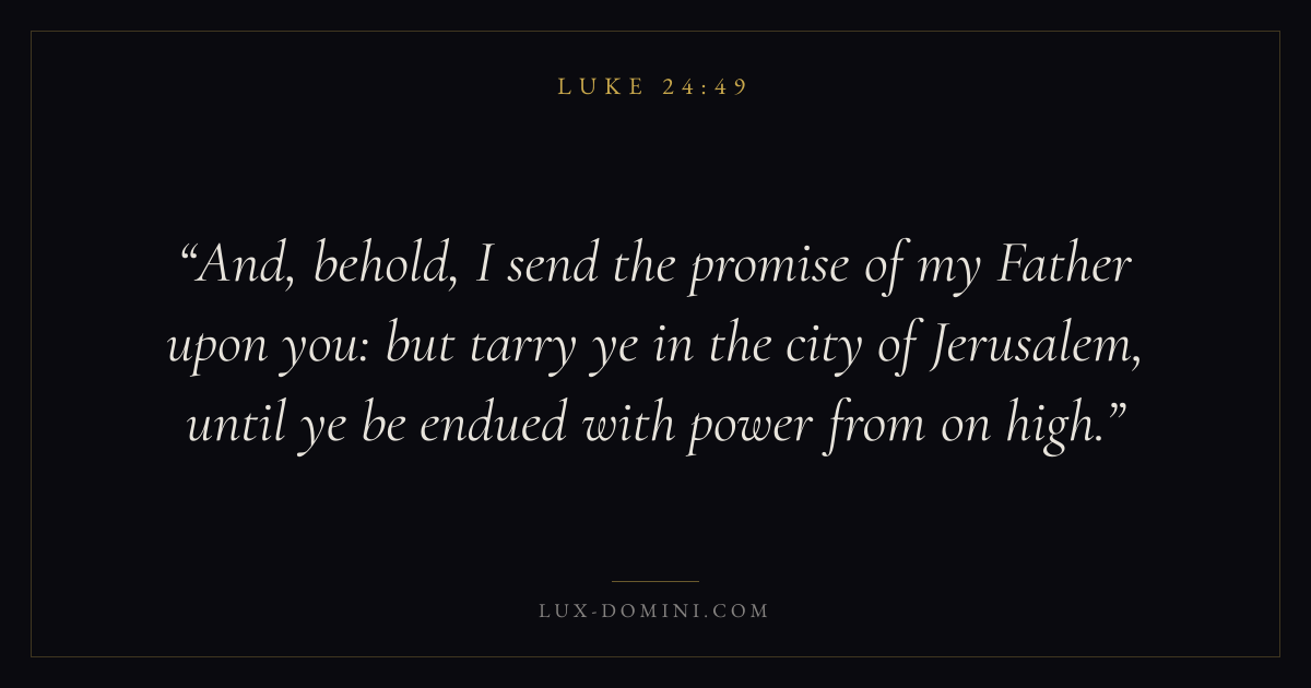 And, behold, I send the promise of my Father upon you: but tarry ye in the city of Jerusalem, until ye be endued with power from on high.