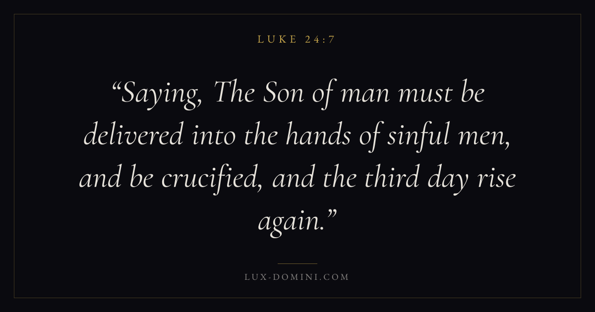 Saying, The Son of man must be delivered into the hands of sinful men, and be crucified, and the third day rise again.