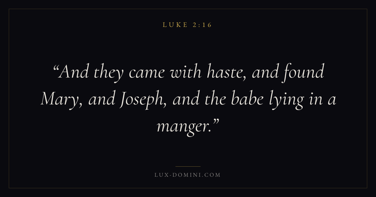 And they came with haste, and found Mary, and Joseph, and the babe lying in a manger.
