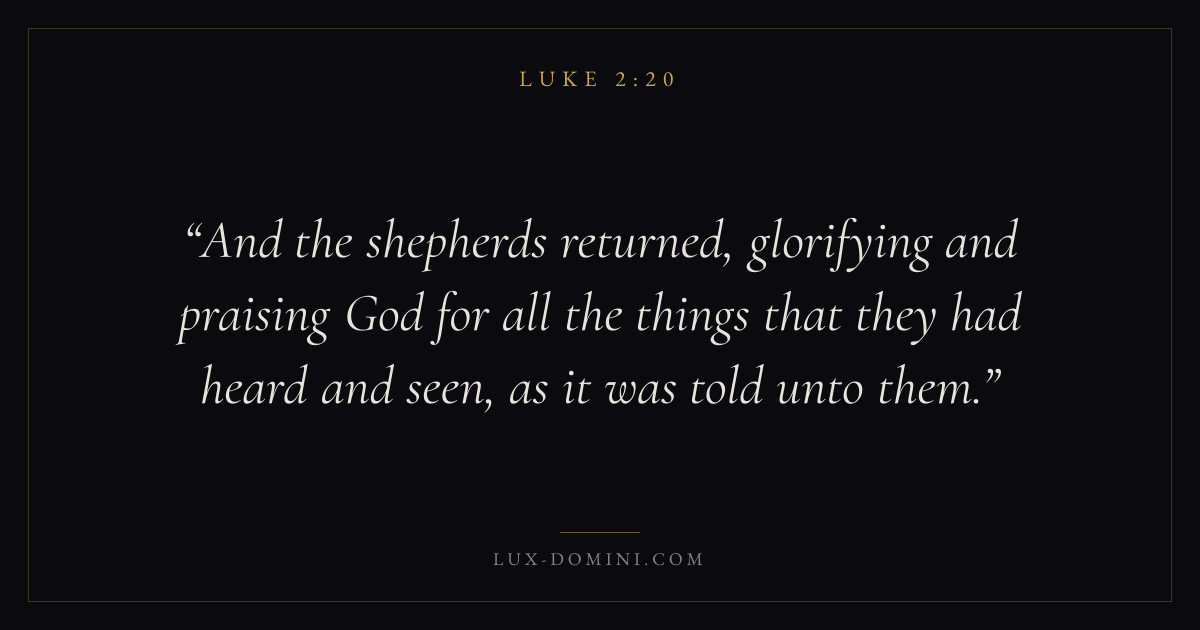 And the shepherds returned, glorifying and praising God for all the things that they had heard and seen, as it was told unto them.
