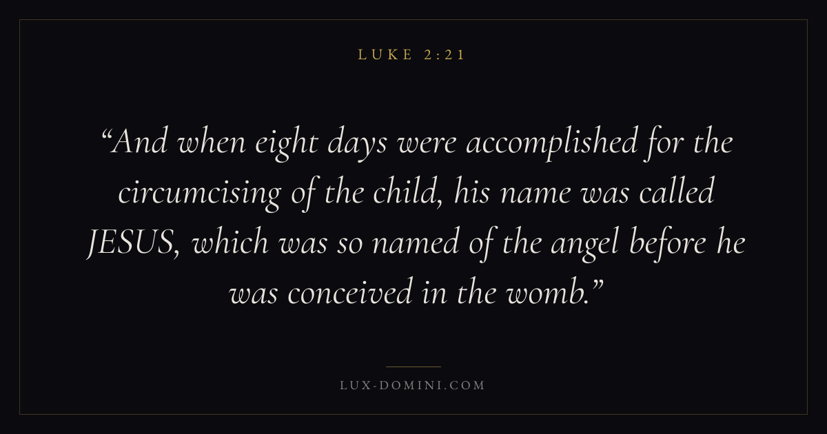 And when eight days were accomplished for the circumcising of the child, his name was called JESUS, which was so named of the angel before he was conceived in the womb.
