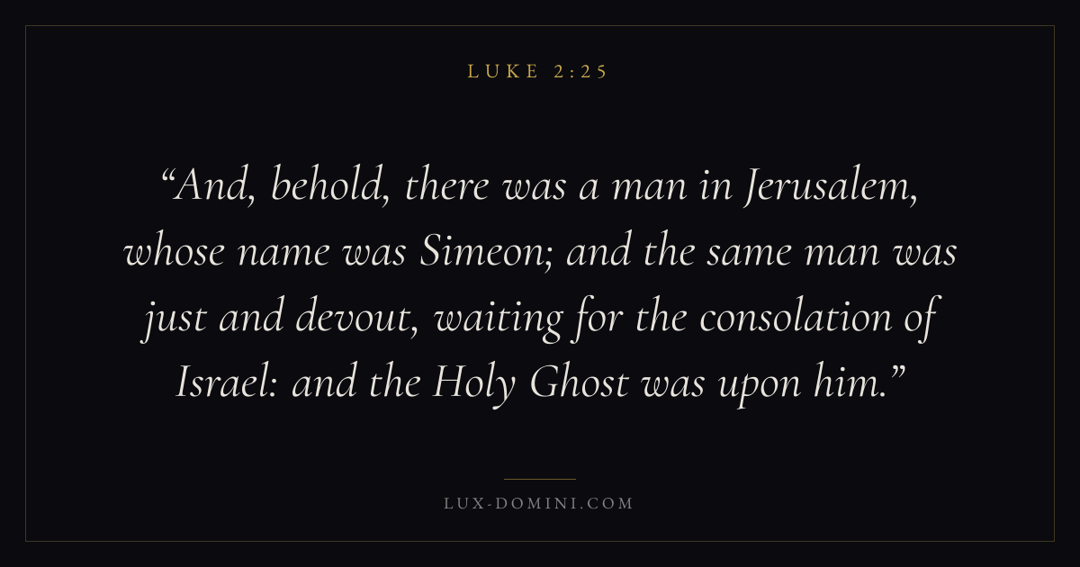 And, behold, there was a man in Jerusalem, whose name was Simeon; and the same man was just and devout, waiting for the consolation of Israel: and the Holy Ghost was upon him.