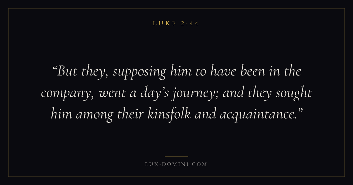 But they, supposing him to have been in the company, went a day’s journey; and they sought him among their kinsfolk and acquaintance.